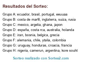 Resultados del sorteo: