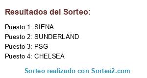 Lista de participantes: PSG, SUNDERLAND, CHELSEA, SIENA.