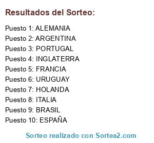 Lista de participantes: ESPAÑA, ALEMANIA, ARGENTINA, URUGUAY, PORTUGAL, FRANCIA, INGLATERRA, ITALIA, HOLANDA, BRASIL.