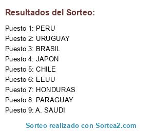 Lista de participantes: PERU, CHILE, URUGUAY, PARAGUAY, BRASIL, EEUU, HONDURAS, A. SAUDI, JAPON.