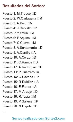 Resultados del sorteo: