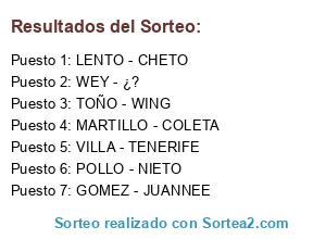 Resultados del sorteo: