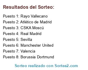 Lista de participantes: Atlético de Madrid, Sevilla, Valencia, Real Madrid, CSKA Moscú, Manchester United, Rayo Vallecano, Borussia Dortmund.