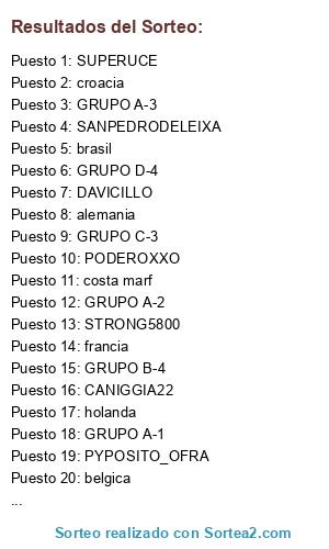Resultados del sorteo: