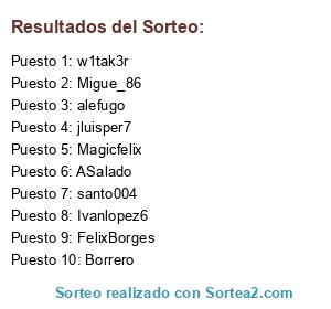 Lista de participantes: ASalado, santo004, Magicfelix, FelixBorges, alefugo, Migue_86, jluisper7, w1tak3r, Borrero, Ivanlopez6.