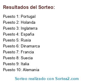 Lista de participantes: España, Portugal, Holanda, Inglaterra, Alemania, Francia, Suecia, Rusia, Dinamarca, Italia.