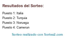 Lista de participantes: Francia, Rusia, Portugal, Croacia, Italia, Inglaterra, Argentina, Holanda, Camerun, Grecia, Turquia, Replublica Checa, Rep. Irlanda, Mexico, Rumania, Noruega, Estads Unidos, Ecuador.