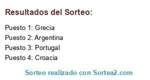 Lista de participantes: Francia, Rusia, Portugal, Croacia, Inglaterra, Argentina, Holanda, Grecia, Replublica Checa, Rep. Irlanda, Mexico, Rumania, Estads Unidos, Ecuador.
