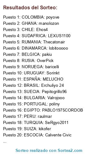 Resultados del sorteo: