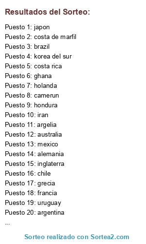 Resultados del sorteo: