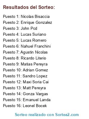 Resultados del sorteo: