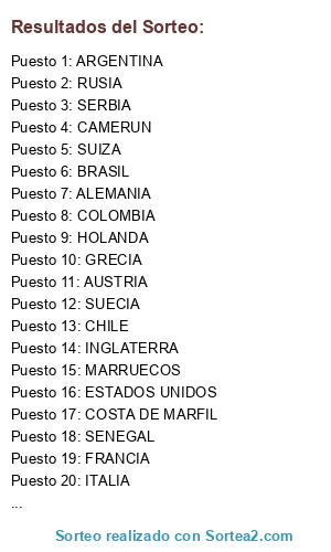 Resultados del sorteo: