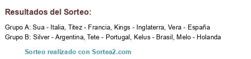 Lista de participantes: Titez - Francia, Tete - Portugal, Sua - Italia, Kings - Inglaterra, Vera - España, Melo - Holanda, Silver - Argentina, Kelus - Brasil.