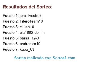 Lista de participantes: andresico10, eljuan10, jonisilvestre9, barsa_12-3, FiferoTeam18, kapa_Ct, ola1992-domin.