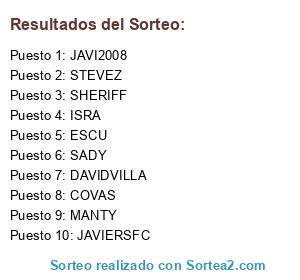 Lista de participantes: MANTY, JAVI2008, DAVIDVILLA, SADY, SHERIFF, ISRA, JAVIERSFC, STEVEZ, COVAS, ESCU.