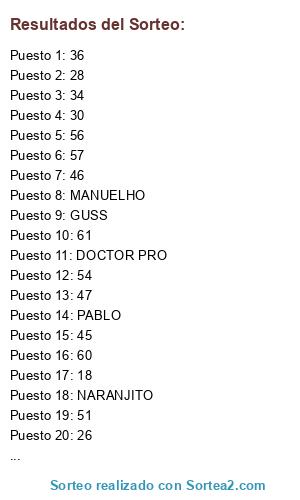 Lista de participantes: CLEMENZA, MIJAIL, CRACKDOWN, MANUELHO, JOSEBARI, OVERPICK, TENZOR, FRANCI, DOCTOR PRO, NARANJITO, PEPITOGRILLO, PABLO, PAKIU, POLINY, LOBITO, GUSS, 17, 18, 19, 20, 21, 22, 23, 24, 25, 26, 27, 28, 29, 30, 31, 32, 33, 34, 35, 36, 37, 38, 39, 40, 41, 42, 43, 44, 45, 46, 47, 48, 49, 50, 51, 52, 53, 54, 55, 56, 57, 58, 59, 60, 61, 62, 63, 64.