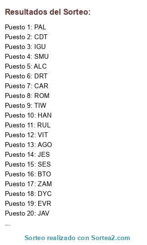 Resultados del sorteo: