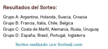 Lista de participantes: España, Brasil, Argentina, Alemania, Inglaterra, Portugal, Holanda, Francia, Italia, Uruguay, Costa de Marfil, Belgica, Rusia, Croacia, Suecia, Chile.