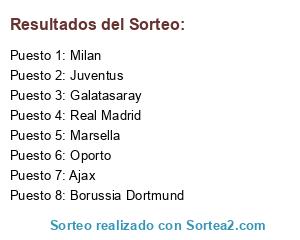 Lista de participantes: Real Madrid, Milan, Borussia Dortmund, Oporto, Ajax, Juventus, Marsella, Galatasaray.