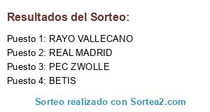 Lista de participantes: RAYO VALLECANO, BETIS, REAL MADRID, PEC ZWOLLE.
