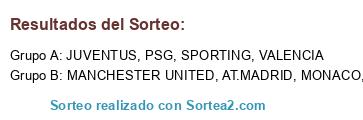 Lista de participantes: MONACO, JUVENTUS, PSG, AT.MADRID, VALENCIA, SPORTING, MANCHESTER UNITED, NAPOLES.