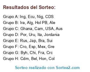 Resultados del sorteo: