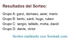 Lista de participantes: sergio, mario, david, moha, hugo, garci, damaso, victor, ruben, santi, berto, dante, asier, talledo.