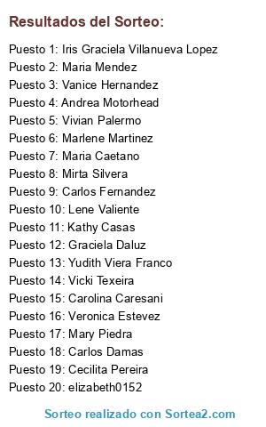 Lista de participantes: Leti Dos Santos, Rodrigo Ribolla Ferreira, Christian S?nchez, Mariela Ferreira, Laura Beatriz Mazzuqui Jaureguiberry, Silvia Rodriguez, Nancy Marr, Anna Matias Aar?n, Maria Jose Codesal, Mallory Ithurralde???, Paola de la Rosa, Noemi Noemi, Carina Mesones, Paola M. Sope?a, Nana Silvia Gonzalez, Gabriela Lambert, Sheila Avakin, Silvia Lilian Cambeiro Lorenzo, Maria Jose Canedo, Karins Pe?alva, Daniela Eula Andrade, Adry Lo Uruguay, Vanessa Robledo, Ines Torterolo, Vanessa Murias, Aitana Jazm?n Rodriguez, Ingrid Bernengo, Andrea Araujo, Tatiana Revillo Su?rez, Claudia Sorribas, Ana Morales, Viviana Gonzalez, Claudia Pereira Diaz, Vane Duarte, Johanna Martinez, Joa Reyno, Maria Casanova, Laura Mendez, Maria Elisa Luna, Carlos Damas, Veronica Ibarra, Fabiana Guillen, Andrea Maturro, Virginia Mena, Stefy Musso, Natalia Devitta P?rez, Naty Cruz Cardona, Alisson Emily Panuncio Martinez, Moni Estevez, Juan Freira, Olga Montenegro, Anetta G?mez, Nancy Vila, Stephanie Machado, Mary Moratorio, Teresita Maguna, Veronica Marrero, Elizabeth Salvia, Naty Carbajal, Cristina Barbisan, Analia Suche, Mara Ruth Gonz?lez Sierra, Gabriela Rodriguez, Maria Villegas, Reina Diaz, Gabriela Lopez, Walquiria Magnini, Miguel Echeverr?a, Silvia Charbonnier, Barbara Gabriela Barth, Alejandra Yvone Marset Guira, Pablo Gamboye, Nadia Konkolowicz, Giovanna Debrun, Paola Cabrera Sellanes, Ana Laura Rodriguez Ribeiro, Stella Arteggiante, Carlos Busto Batista, Fio Granizal, Ana In?s Pedrozo Iba?ez, Katty Martinez, Kathy Casas, Rocio Caporale Macchi, Elena Silva, pruebe ´CLICKER´. De seguro le va a gustar !!", Silvi Giannotti, Dahia Paola Galli, Mica Pereyra Amorin, Myriam Ihitz, Claudia Nigro, Yonatan Beron Almanza, Valeria Picardo, Lorena Paola Ramos Arellano, Elizabeth Presta, Maria Del Rosario A?on, Francisco Cabrera Piedrabuena, Fabiana Alonso, Rosa Varela, Soraya Tejera, Laura Lisboa, Eveline Birriel, Naty Riera Olivera, Silvana Madelon, Belu Pinion, Maria Pi?on Suarez, Geraldine Obes, Mar?a Sanchez, Natalia Monta?o, Adriana Sierra, Lidian Rios, Sandra Valenzuela, Luc?a Barreto, Mar?a A. M. Gonz?lez, Cecilia Gonzalez, M?nica ?vila, Estela Rosso, Maria Delia Maru, Checho Odiotti Arias, Noelia Moratorio, Viviana de Leon, Veronica Rodrigo, Mar?a Eugenia Godoy, Robinson Sanchez, Alicia Carlini, Mary Piedra, Laura Braida, Carolina Caresani, Maria Noel Ramos Avila, Ana Coto Branca, Lilian Perez, Claudia Geminis, Claudia Deicu, Maby Montiel, India Batto, Mariela Alvez, Ibis Nela Gonzalez Roux, Cadir Cecilia Pereyra Techera, Maria Silvera, Mary Salvatella, Teresita Stirling, Ana Victoria Gutierrez Benitez, Daiana Ollarzo, Paola Alcain, Karinna Elizondo Piombo, Cecilia Nu?ez, Rosana La Mancha, Monica Goicoechea Melo, Brenda Accinelli, Estela Herrera, Gloria Gonzalez, De Pi?eyro Ynes, Sandra Martinez, Natalia Melo, Carina Laborde Falero, Silvia Natalia, Adriana Garcia Papaleo, Vicki Texeira, Cristuna Ojeda, Cynthia Paleo, GaBi Caquias, Patricia Mancilla, Bettiana Pion, Adriana Rodriguez, Silvia Pizzini, Mariela Gutierrez, Alejandra Mendieta, Virginia Hernandez, Nelly Tortosa, Alejandra Toledo, Stephanie Geraldine Manzino Arbuet, Marianela Moleda, Andrea Motorhead, Sonia Flores, Ximena Barudi, Paola Caceres, Marisa Quiroga, Gabba M?ller Berocay, Magel Bentancourt, Carolina Spagnuolo, Myrna Navarro, Miryam Rodriguez, Laura Fabiana Pereira Arezo, Graciela Negreira, Graciela Valerio, Virginia Vazquez, Elizabeth Cabrera Chaparro, Monica Torrens, Carmen Carreras, Sofia Paulli, Soledad Gonzalez Martirena, Juan Martinez, Vaanee Alzogaray, Tony Fefa De Carballo Guzman, Debora Zerpa ???, Carlos De los Santos, Cristina Martinez, Alexandra Martinez Fernandez, Lourdes Perez, Martina Ramos, Mailyn Escandell, ????", Mara De Armas, Claudia Bereciart?, ???", Hugo Cuba Fraga, Sigo participando ? para manyita y tony", Dami Scaffo, Joselin Sosa, Alejandra De Souza, Maria Pias, Gabriela L Martinez, Elida Silva, Elo?sa Troya, Gonzalo Rodriguez, Yolanda Cor, Francisco Kurucz Sosa, Claudia Espa?a, Kenia BM, Provisi?n Lo de la Moni, Maria Ghan Gonzalez, Daniela Quiben, Rosana Ara?jo Cuadra, Monica Larronda, Viviana Bonilla, Mariana Sosa, Mariana Pe?a, Haila Macknight Berniger, Ana Laura Cardoso, Silvana Techera, Rosana Aristimu?o, Veronica Sarutte, Marlene Martinez, Florencia Irrazabal Kahn, Beatriz Cadiac, Karen Bustos, Noelia Broncini, Laura Saldivia, Deborah Da Rosa Gonzalez, Maria Del Carmen Mazzuco, Mara Cardozo Martinez, Patricia Rodriguez, Lujan Borches, Blanca Pati?o, Vero Gomez, Sandra Sandy, Adriana Vidiella, Romina Bonifacio, Silvana Peirano, Mariana Gobbi, Lauren de los Santos, Susana Lopez, Ana Maria Cordoba, Patricia Muniz, Karen Ramos, Nadia Moreira, Mery Barrios, Gricelda Larrosa, Maria Del Huerto Pintos, Liliana Aracelly Werner Ortiz, Rosario Milans, Lucia Alcantara, Margarita Pereira, Monica Martinez, Mery Seixas Carlos Tort, Beatriz Rivero, Carmen Villanueva, Vanesa Navarro, Yeny Charquero, Jacqueline Neyra, Andy Duchy, Andreina Alfaro, Marisel Negro Martinez, Lorena Garcia, Alexandra Cabrera, Daniela Moreno, Maria Lanterna, Marianela P?rez Conca, Natalia Larrosa, Chantal Castro, Lorena Odela, Sharon Pintos, Kitty Viazz Vie, Raquel L?pez, Valeria Alvarez Valdez, Martha de los Santos, Dora Antunez, Sonia Huanca, Romina G Baez, Isabel Muniz, Florencia Cano Guimaraes, Estefani Maidana, Vanessa Toscanini, Juliana Olmedo, Alejandra Fauci, Maria Fernanda Dodera, Dianuje Blayeska Aleksiejunaite, Alicia Cabrera, Margarita De Le?n, Esther Alfaro, Patyjuliromaniale Vignoli, Luz Del Alba Fernandez, Hilda Airala, Maria Del Carmen Carballo, Marcela Rivero, Claudia Perez, Elsa Naso, Pamela Gomez, Patricia Viera Nolasco, Mariel Di Ciocco, Silvia Carro, Viviana Brun, Leticia Perez de Rabellino, Gladys Guerrero, Sonia Sobrera, Medina Hilda, Sandra Castro, Sirley Olivera, Mary Martinez, Karina Pintos, Lau Ri, Alejandra Vanessa, Carmen Perdomo, Patricia Pagano, Sandra P?rez Spinelli, Patricia Larrosa, Patricia Mu?oz, Santa Mari