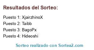 Lista de participantes: Hideoshi, alesxs, barreirodani, elalo, Visperod, BagoPx, Typhlosion24, masterbryan2, Agustina321, Taibb, ElMiggio, XjairzhinoX, gordoplay, lDarkShadowl, BlackStar121, OsheZhy, TheMK, pevott, Nacho123.