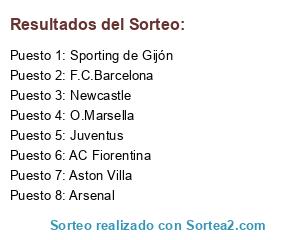 Lista de participantes: F.C.Barcelona, Juventus, Aston Villa, O.Marsella, Newcastle, AC Fiorentina, Sporting de Gijón, Arsenal.