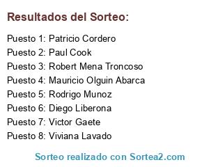 Lista de participantes: Mauricio Olguin Abarca, Robert Mena Troncoso, Victor Gaete, Viviana Lavado, Patricio Cordero, Paul Cook, Diego Liberona, Rodrigo Munoz.
