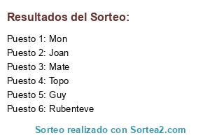 Lista de participantes: Mon, Joan, Guy, Mate, Rubenteve, Topo.