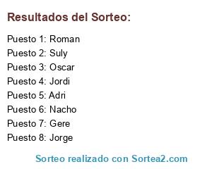 Lista de participantes: Jordi, Jorge, Roman, Gere, Nacho, Suly, Oscar, Adri.