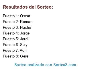 Lista de participantes: Jordi, Jorge, Roman, Gere, Nacho, Suly, Oscar, Adri.