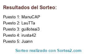 Lista de participantes: guilloteai3, irusta42, Juann, LauTTa, ManuCAP.