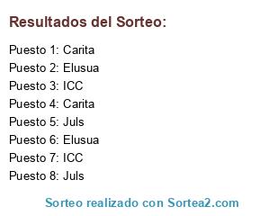 Lista de participantes: Carita, ICC, Elusua, Juls, Carita, ICC, Elusua, Juls.