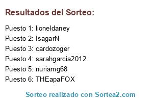 Lista de participantes: _jmanel, _ury, acarde71, adrianfm_94, albertod89, Alex_95h, alex_aparisi, alexeicadizz, alexisromloz, aliasjesusalias, alp4985, anabmart, AnaDominguezG_, andres22cm, Andresserrano21, AndroidSmartPro, angel__nieto, AnnoRo144, aquelarre3, armacuatro, arnausnilom, aydres, BertoPerez97, birdwitted, bortxwanted, brabius10, bucanero165b, c_sekhmet, cardozoger, Carlos1973Perez, Carlosmini6, carmensafe, carolroma74, Casimiro2Ojos, ChariSanchez82, christian_cuc, ClavoMarisa, cotiess, cotilas1, Crazovey, crisnoksam, crispi08, cristianvh91, d1b67e2f1aa7453, DavileGT, dcourense, decimas83, detaillover, DMyurex, ds23ytube, dvddd_6, elese091, ElTioDelGol, enriquemr8, espe1975, f_barrosg, FatiAlQui, fjsanchez85, florivicen, GloriaUrquidi, gorgues, helnavarrogo, hugonieto360, IgnacioRambo, increpone, ipatri1, IsagarN, Iub71, J_Vixu, jagule263, JaRibasOl, jarotrivio21, Javier_Taeno, javierbc67, Javiro74, jdiazlanza, jmesolo976, Jon1baza, josealca, JoseMariaGuinea, JosepAranega, JosuePaloma, JuanSanFer85, Jubisima, JulenDominguez, julespema, juluvi, KhemyReina, KikoSanchez85, kilihendrix, lafotografia, lakio84, LibradaRosa, lioneldaney, LuisBartolom2, luismivm73, Maclince, mamem07, ManuCacharra, manuelbazaga, marconinet, MarquitosReaper, mcallus, miguelangeln70, MirenAPF, MobileWorldSO, Moncho1313, MrGadget76, nachoroad, nanuesp, Nievesfornos, noeluna13, nuriamg68, ogggca, ovetus09, P4SQ4L, pablobetes, pachorrodigo, PalomaAlonso__, panik10, papasmallor, pascualnavarra, pikitamaria, posonty, PTaracido, rafapepo, RaquelSolmar, Raulysantos, RedwebRosa, rmsanchez86, rocisant, Rosariofergon, Salvatore_GF, SamU18109, SandraSabariego, sanmander_91, sansan_91, saraaredfield_, sarahgarcia2012, scorpia8888, SerafinSanGar, SergioMorte94, sergioRCcelta, SilviaBMa, slx17, soniabp71, sonrisasmil, Sorirc, SrFer7, sublimadokorro, superluis, supermerced, TeddyBear_GH, TejeiroB, teresamandin, terryns31, THEapaFOX, TKMIAMOR5072013, tomasramg, Tonipasingshot, Torrecilla_no, toupaipai1979, txomin226, VamosRafaaa, vanesalupi, VaneTgna, vicnistal, victorespada, VictoriaGPerea, vyr_TO, WagnerOlivero, xeluvi, YasoElPayaso, yo_Cmisma, YoliSolerM, yoryi89, YosoyKini, yourfiresflying, Zapa233, ziltoidominisce.