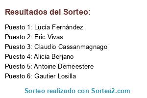 Lista de participantes: Alicia Berjano, Eric Vivas, Gautier Losilla, Claudio Cassanmagnago, Antoine Demeestere, Lucía Fernández.