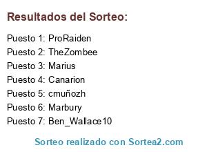 Lista de participantes: Marbury, Marius, Canarion, TheZombee, ProRaiden, cmuñozh, Ben_Wallace10.