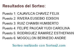 Lista de participantes: FELIPE PAUCAR YUDI CAROLINA, MOGOLLON BERNEDO ANDRE, RUIZ CHAMBI HUMBERTO, CAJAVILCA CHAVEZ FELIX, RIVERA EUSEBIO EDISON, RODRIGUEZ RAMIREZ ESTHEFANNY.