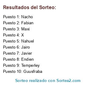 Resultados del sorteo: