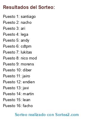 Resultados del sorteo: