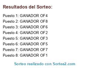 Lista de participantes: GANADOR OF1, GANADOR OF2, GANADOR OF3, GANADOR OF4, GANADOR OF5, GANADOR OF6, GANADOR OF7, GANADOR OF8.