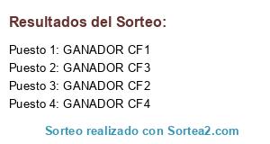 Lista de participantes: GANADOR CF1, GANADOR CF2, GANADOR CF3, GANADOR CF4.