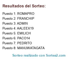 Lista de participantes: AALEEX19, PACO14, ROMAPRO, PEDRITO, FRANCHIP, EMILICH, ADMIN, MANUWATAGATA.
