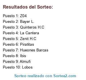 Lista de participantes: Ibis, Hueones Barcas, Z04, Piratitas, Zenit H.C, Bayer L., Almufi, Quinteros H.C, La Cantera, Lobos.