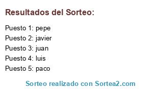 Lista de participantes: paco, pepe, juan, javier, luis.