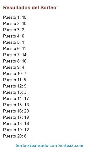 Lista de participantes: 1, 2, 3, 4, 5, 6, 7, 8, 9, 10, 11, 12, 13, 14, 15, 16, 17, 18, 19, 20.