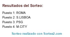 Lista de participantes: S.LISBOA, M.CITY, ROMA, PSG.