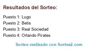 Lista de participantes: Lugo, Real Sociedad, Betis, Orlando Pirates.